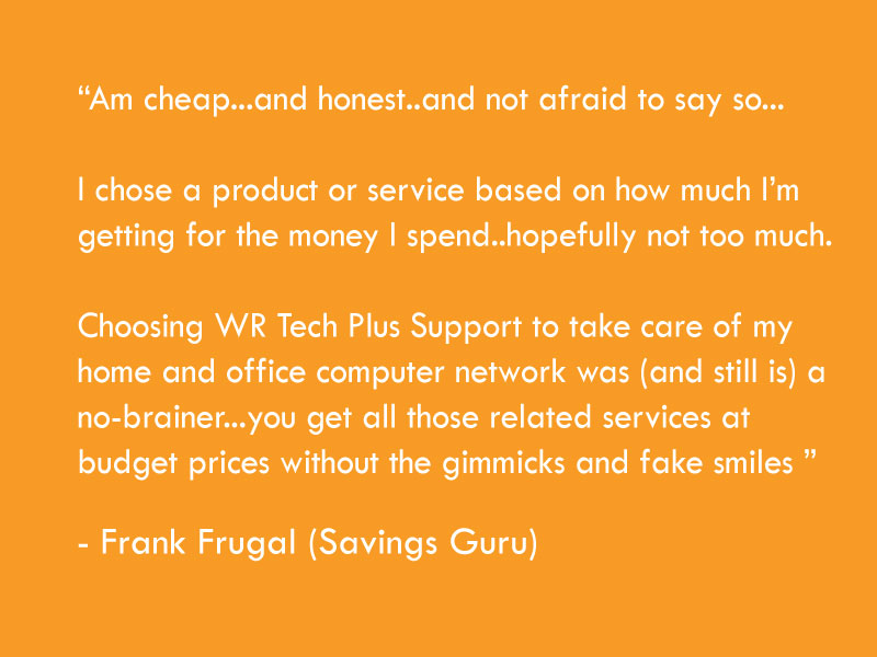 What our one time customers and long time clientele have said (and what future customers are likely to say) about WR Tech Plus Support Services